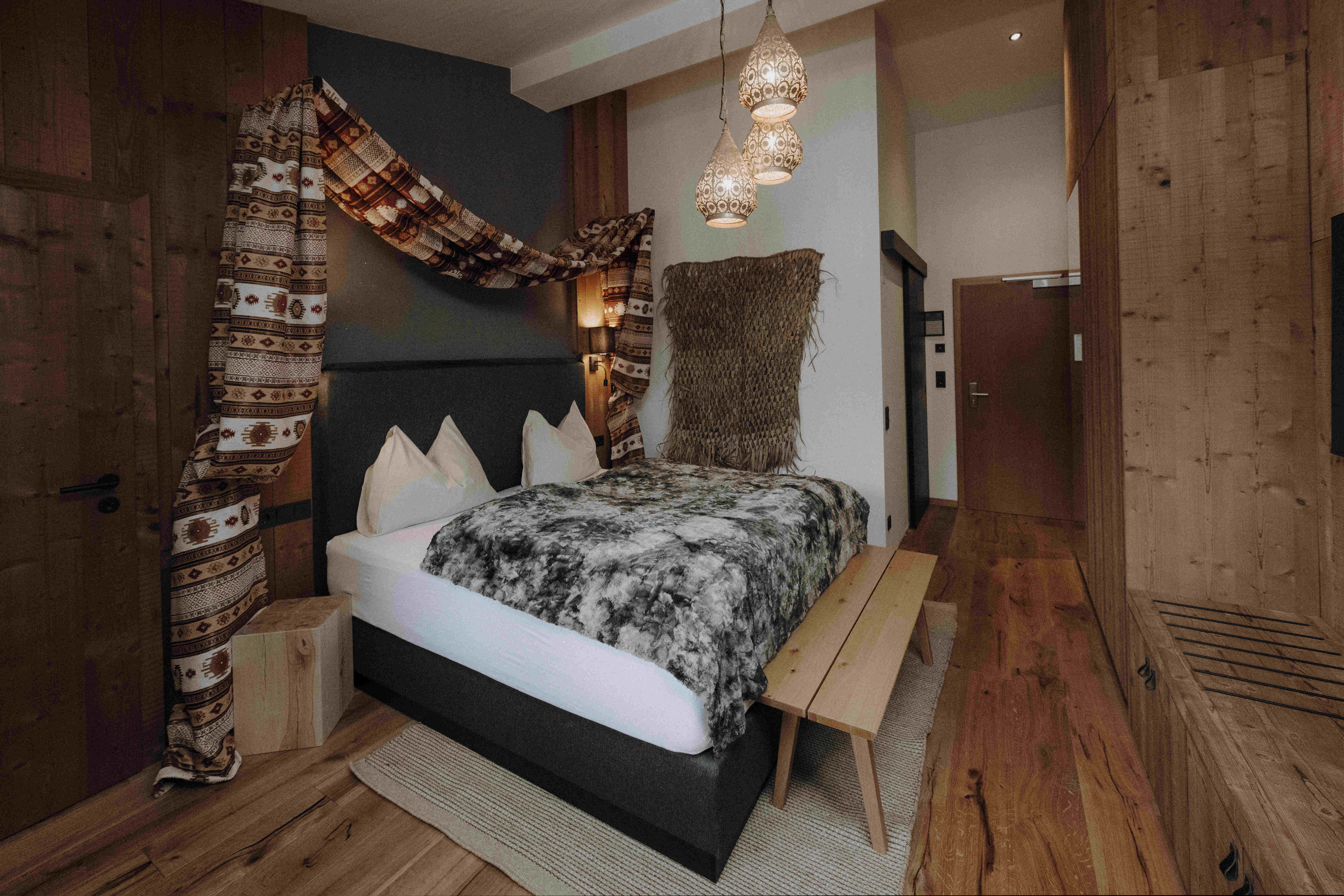 25 m², max. 2 persons, double room in the main building, balcony, alpine style with oriental accents, parquet flooring25 m², max. 2 persons, double room in the main building, balcony, alpine style with oriental accents, parquet flooring